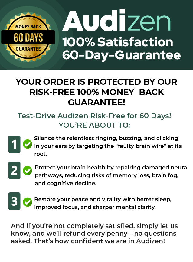 If you’re dead serious about quiet, clear hearing, restful sleep, and unwavering confidence, you can’t afford to hesitate. This is your FINAL shot to lock in Audizen at this jaw-dropping price—with an iron-clad 60-Day, No-Questions-Asked Money-Back Guarantee.