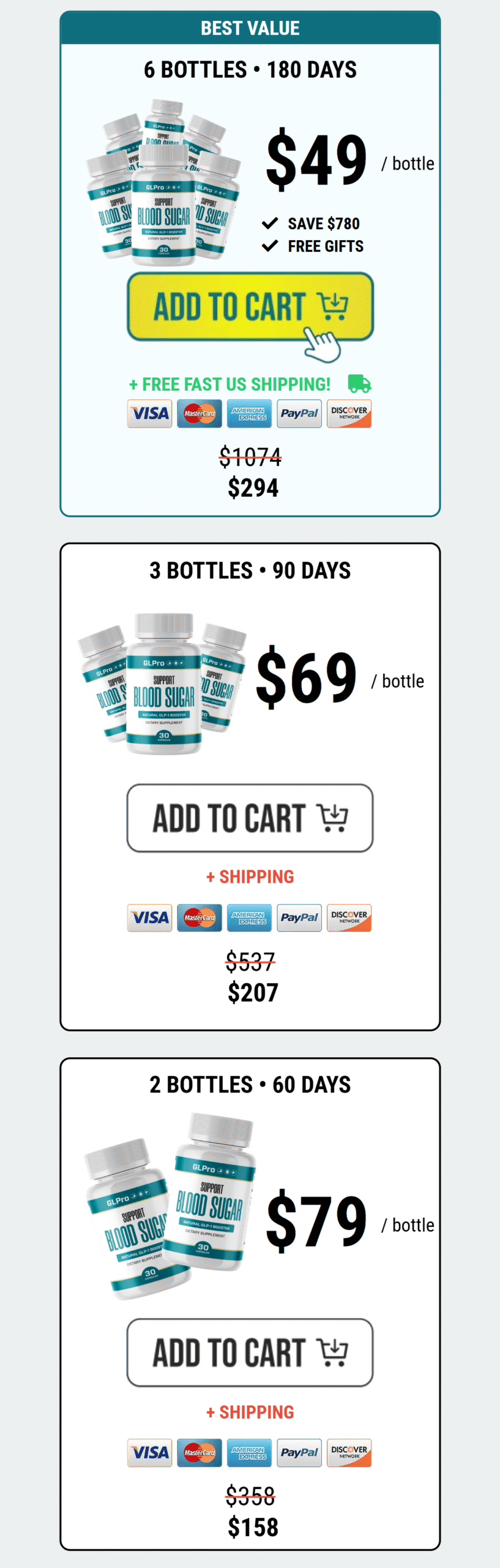The official GLPro website is the only secure place recommended for ordering. Buying directly from the manufacturer helps ensure you receive genuine GLPro bottles, access the current discounts and bundle pricing, and stay fully covered by the 60-Day Satisfaction Money-Back Guarantee.